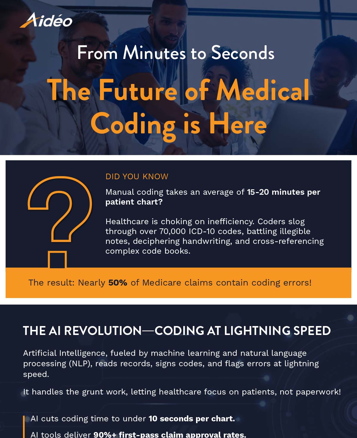 Uncover the next generation of medical coding, where advanced AI and automation shrink workflow TATs from minutes to seconds. This infographic highlights the breakthroughs enhancing precision, speeding up processes, and redefining healthcare efficiency in 2025.